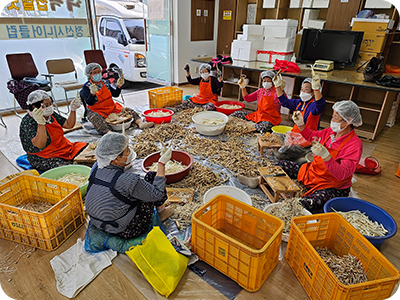 북어채찢기: 북어납품 업체와 제휴를 맺어 수작업을 통해 북어채 찢기 작업 후 재납품 하는 일자리 사업